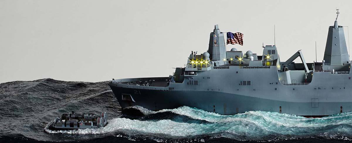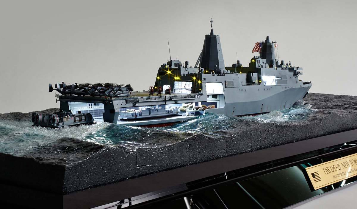 Морская диорама "San Antonio Class LPD-21 USS New York ", в масштабе 1:350, моделист: Hyun Soo Kim.