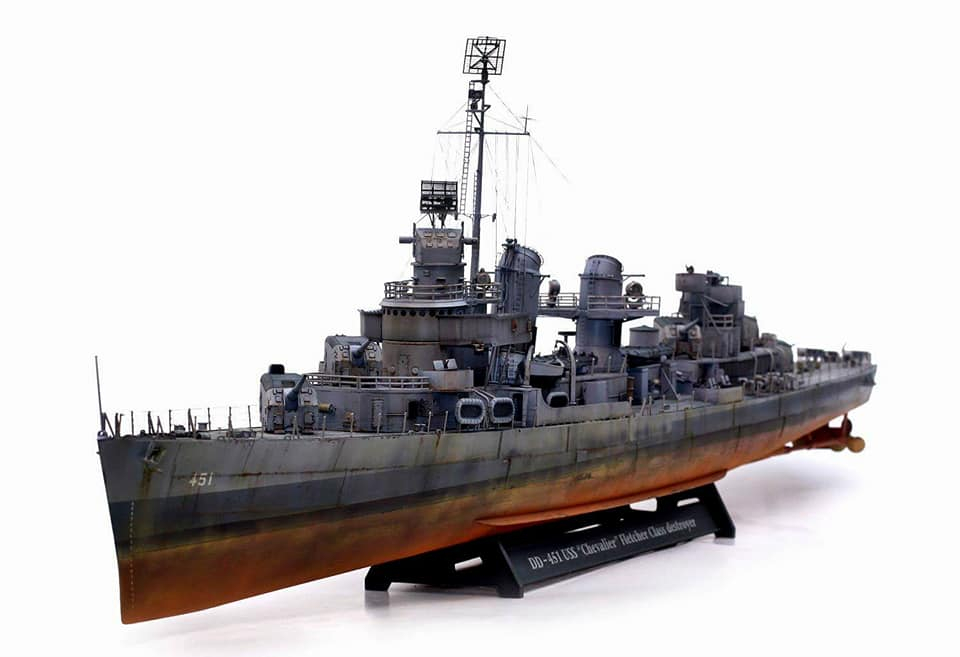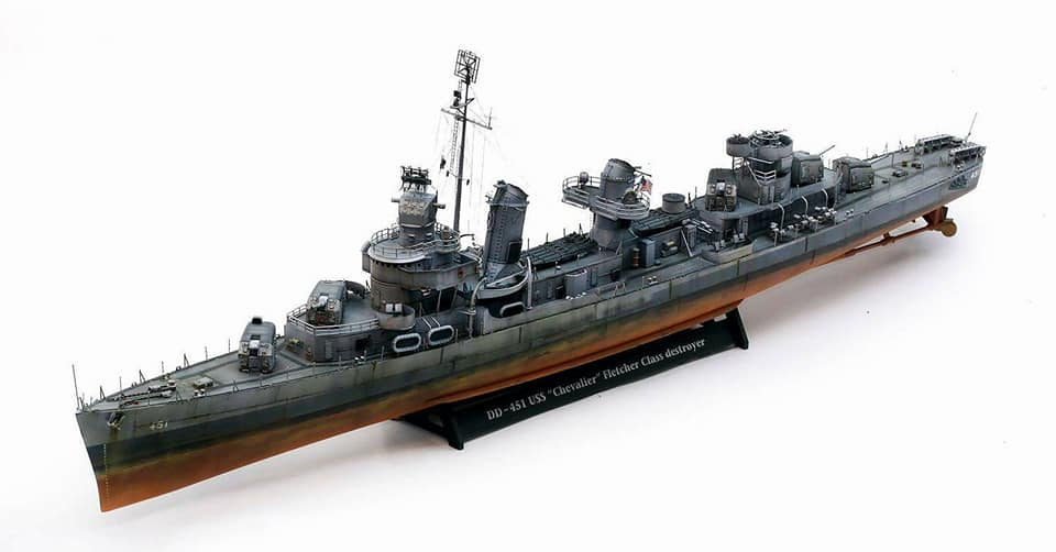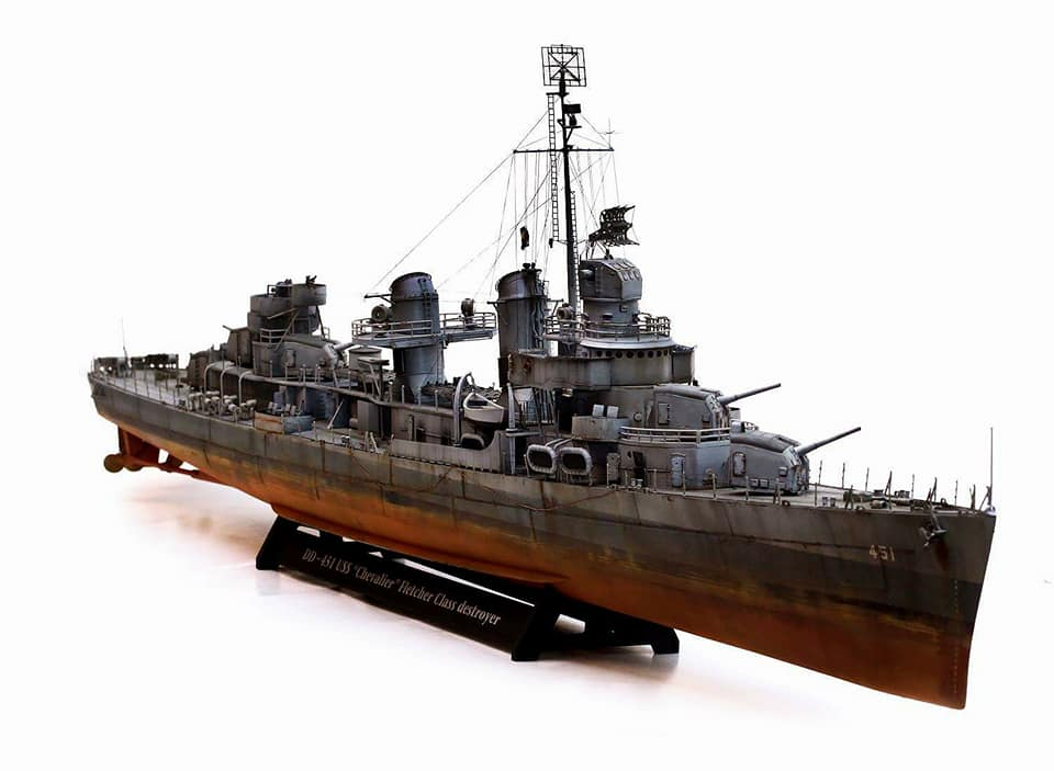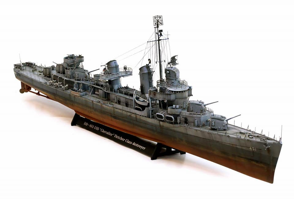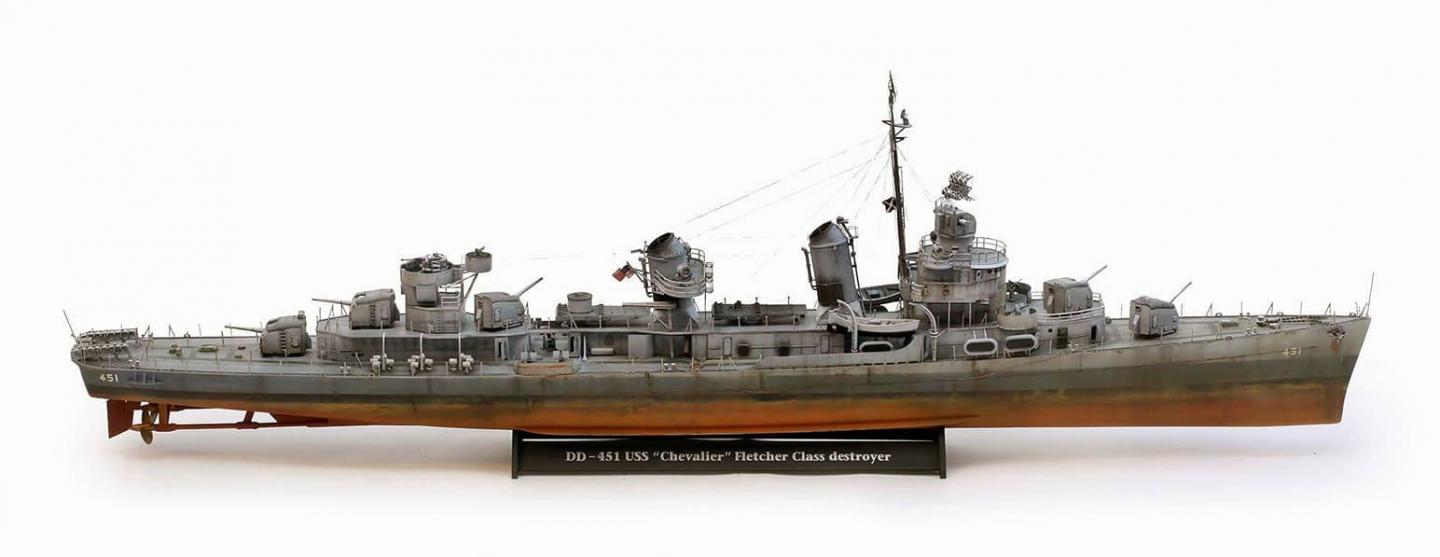 Модель корабля DD-451 USS Chevalier, Fletcher class Destroyer производства Revell. Масштаб 1/144. В работе использовались дополнения Eduard PE Set. Для окраски модели использовались краски Mr. Hobby.